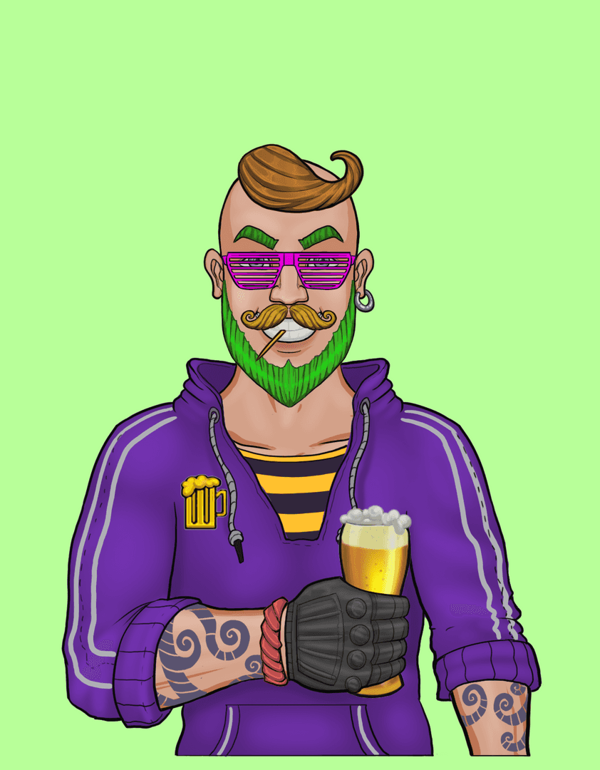 Each BeerPunk is unique and programmatically generated from over 450 possible traits, such as background, headwear or haircut, clothing, bracelets, beer, tattoos, and more.